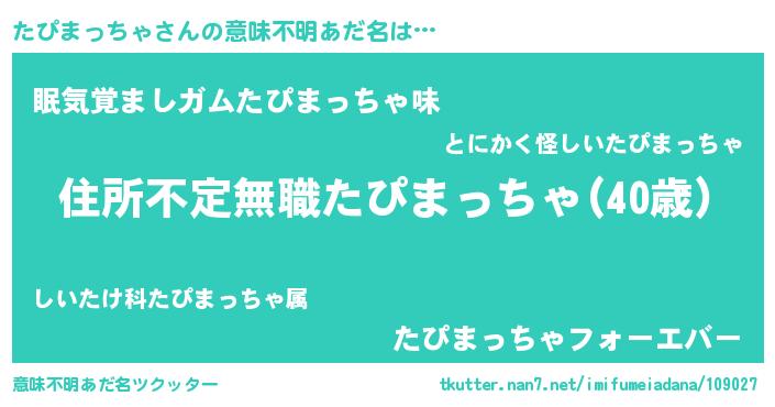 | 料理風あだ名 | 『たぴまっちゃのカルパッチョ風』 |