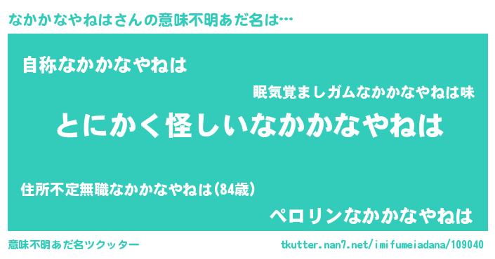 | ポケモン風あだ名 | 『ヒナカカナヤネハ』『ナカセウス』 |