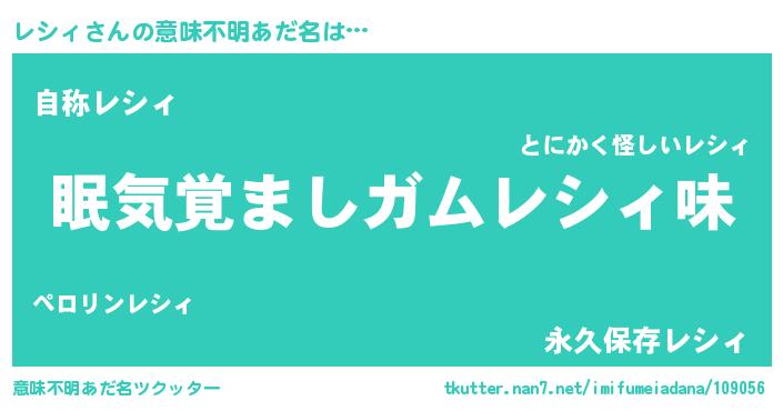 | 女子向けラノベタイトル風あだ名 | 『レシィ恋絵巻』『レシィアンティーク』 |