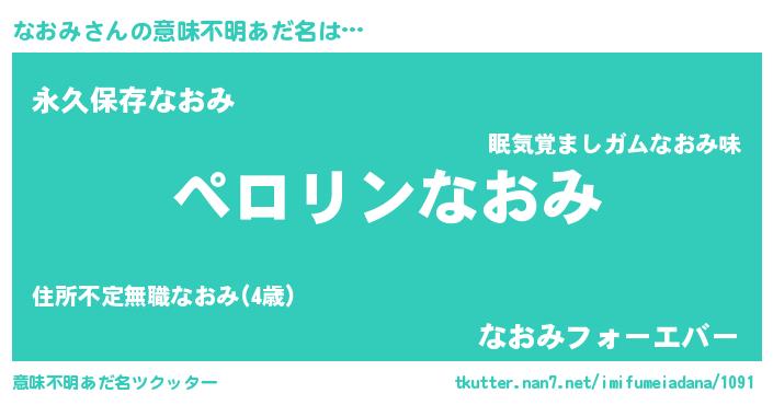 | 男性向けラノベタイトル風あだ名 | 『なおみの憂鬱』 |