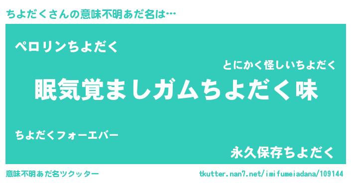 | ヘコむあだ名 | 『ちよふぇ~』『ちよだく(小並感)』 |