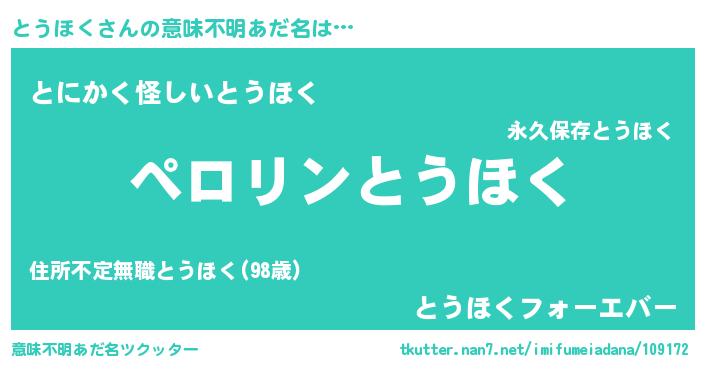 | ヒーロー風カッコイイあだ名 | 『スーパートウホク』『炎刃騎士トウ』 |