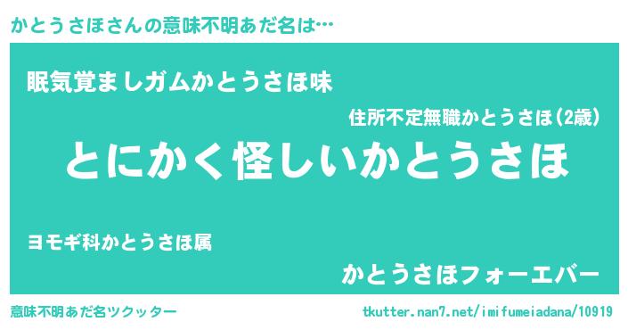 | 女子向けラノベタイトル風あだ名 | 『かとうさほの卵を拾いまして』 |
