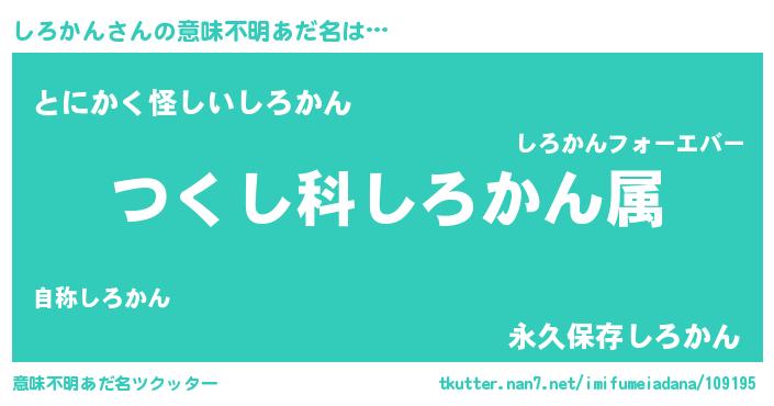 | 男性向けラノベタイトル風あだ名 | 『しろかん~年齢イコール彼女いない歴の魔法使い~』 |