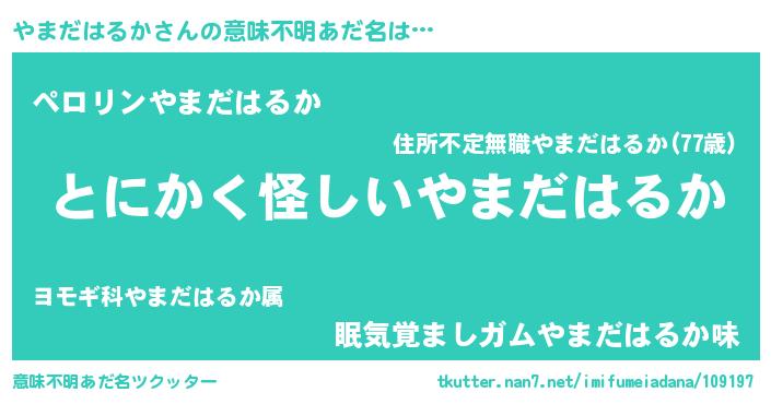 | 欧米人風あだ名 | 『ウサインやまだはるか』 |