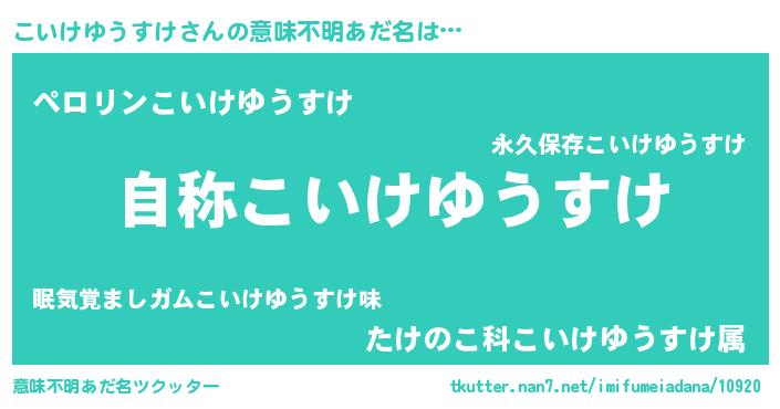 | 女子向けラノベタイトル風あだ名 | 『こいけゆうすけアンティーク』 |