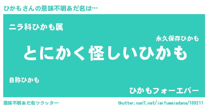 | 男性向けラノベタイトル風あだ名 | 『ひかもの嫁は女の子じゃないと思った?』 |