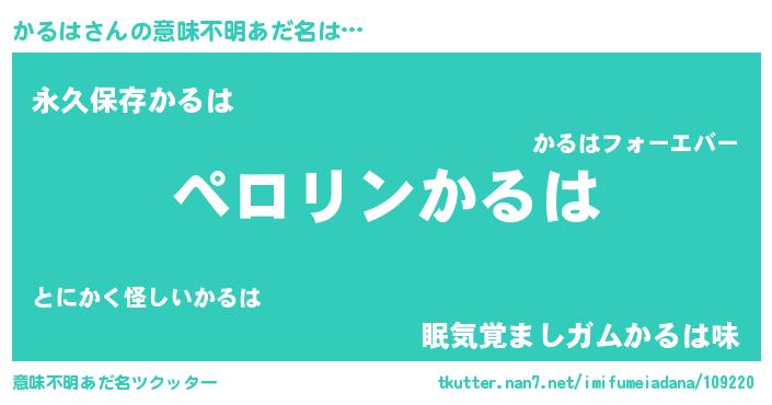 | ヘコむあだ名 | 『かるもー』『かるは(小並感)』 |