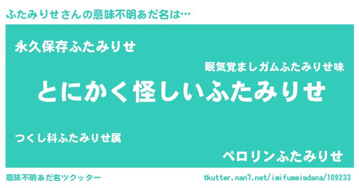 | 欧米人風あだ名 | 『ウサインふたみりせ』 |
