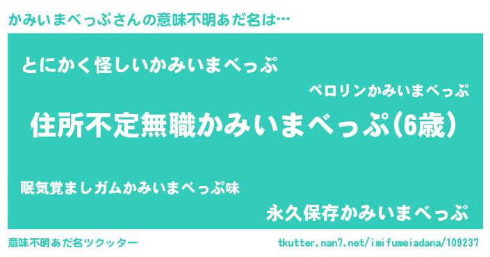 | 女子向けラノベタイトル風あだ名 | 『悪役かみいまべっぷに転生したようですが、知った事ではありません』 |