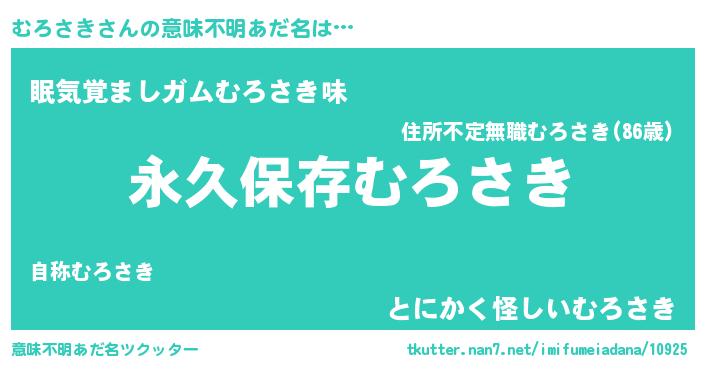 | 男性向けラノベタイトル風あだ名 | 『むろさきという概念が存在しない退屈な世界 』 |