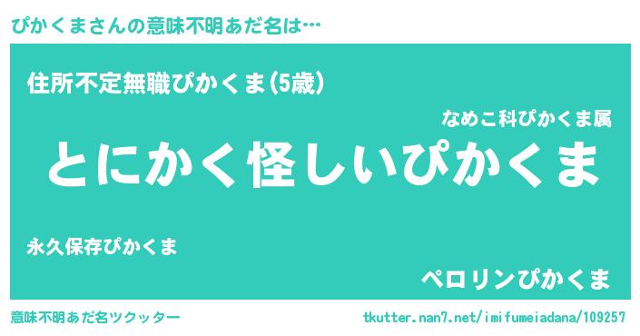 | 男性向けラノベタイトル風あだ名 | 『ぴかくまの嫁は女の子じゃないと思った?』 |
