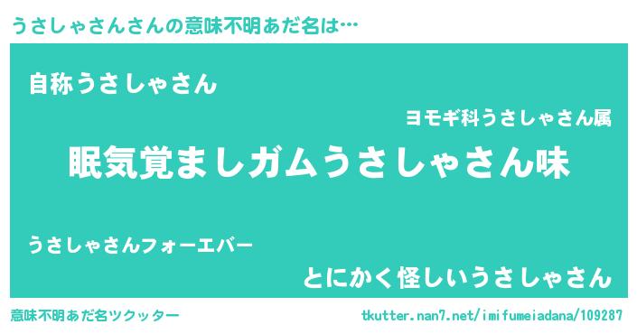 | ヒーロー風カッコイイあだ名 | 『慈愛の使者うさしゃさん』 |