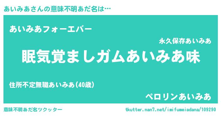 | 欧米人風あだ名 | 『ダニエルあいみあ』『マイケルあいみあ』 |