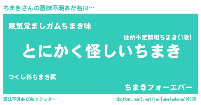 | ポケモン風あだ名 | 『チマゴンZ』『ヒチマキ』 |