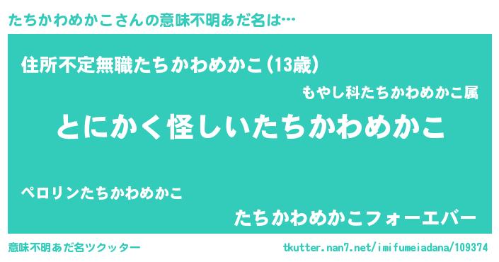 | ポケモン風あだ名 | 『ヒタチカワメカコ』『ターチイ』 |