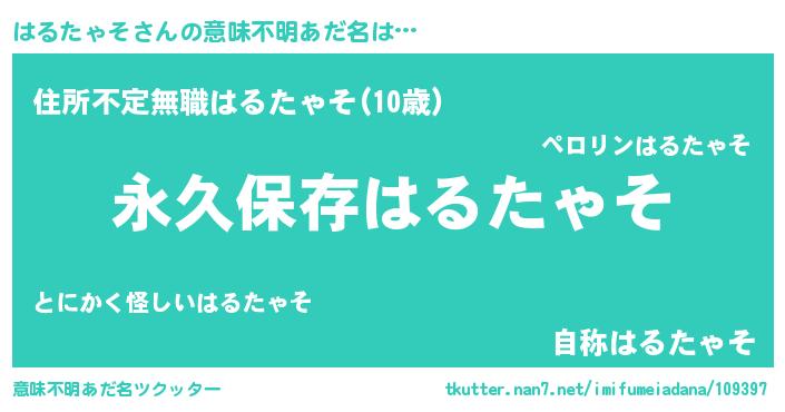 | ヒーロー風カッコイイあだ名 | 『ネオハルタャソ』『仮面ハルダー』 |