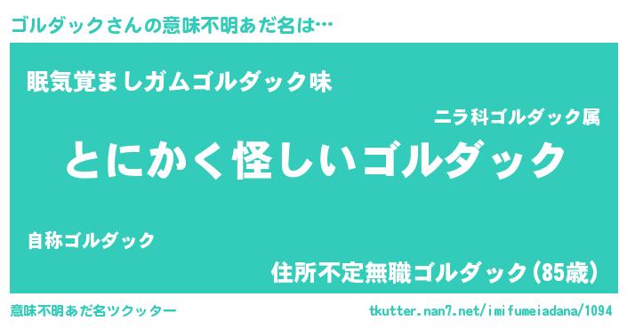 | 男性向けラノベタイトル風あだ名 | 『ゴルダックの嫁は女の子じゃないと思った?』 |