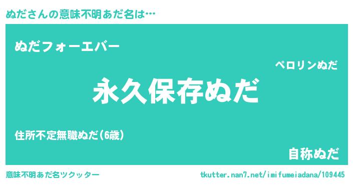 | 伝説のあだ名 | 『古より伝わる暗殺者ぬだ』 |