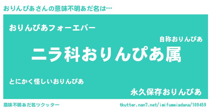 | 男性向けラノベタイトル風あだ名 | 『うちのおりんぴあが世界を掌握している!』 |