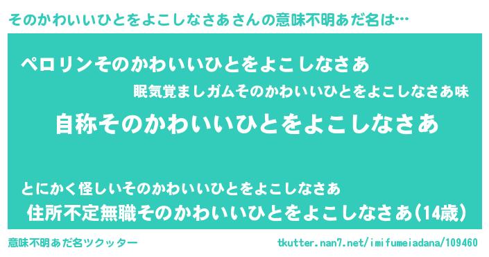 | 欧米人風あだ名 | 『ケンブリッジそのかわいいひとをよこしなさあ』 |