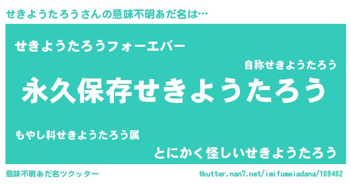 | 男性向けラノベタイトル風あだ名 | 『せきようたろうという概念が存在しない退屈な世界 』 |