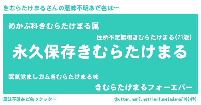 | 胡散臭い通販商品みたいなあだ名 | 『前代未聞の健康食品…その名も「きむらたけまる」』 |