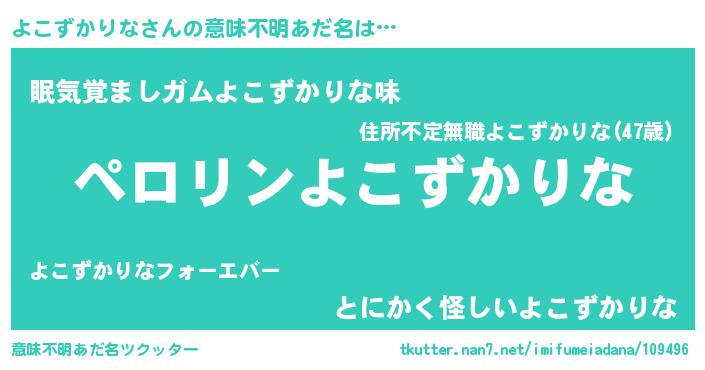 | 男性向けラノベタイトル風あだ名 | 『ヨコズカリナアートオンライン』 |