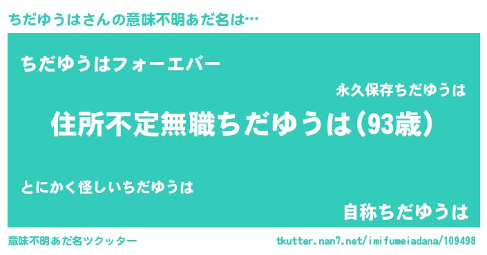 | 男性向けラノベタイトル風あだ名 | 『うちのちだゆうはが世界を掌握している!』 |