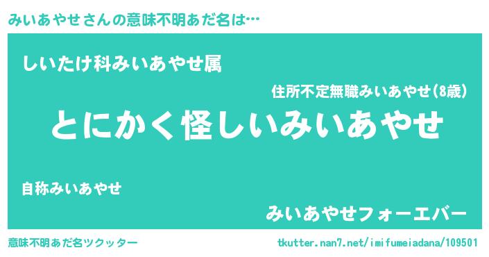 | 欧米人風あだ名 | 『ウサインみいあやせ』 |