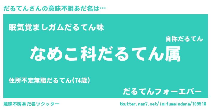 | 男性向けラノベタイトル風あだ名 | 『転生したらだるてんだった件』 |