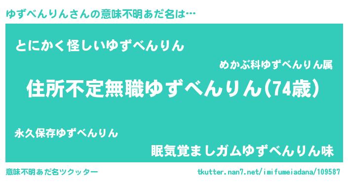 | 料理風あだ名 | 『ゆずべんりんのカルパッチョ風』 |