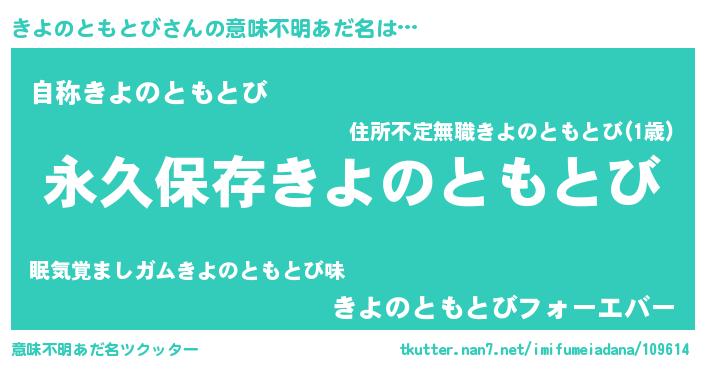 | 胡散臭い通販商品みたいなあだ名 | 『来世でも幸せになれる健康食品…その名も「きよのともとび」』 |