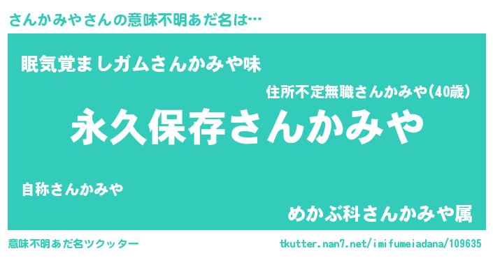 | 胡散臭い通販商品みたいなあだ名 | 『来世でも幸せになれる健康食品…その名も「さんかみや」』 |