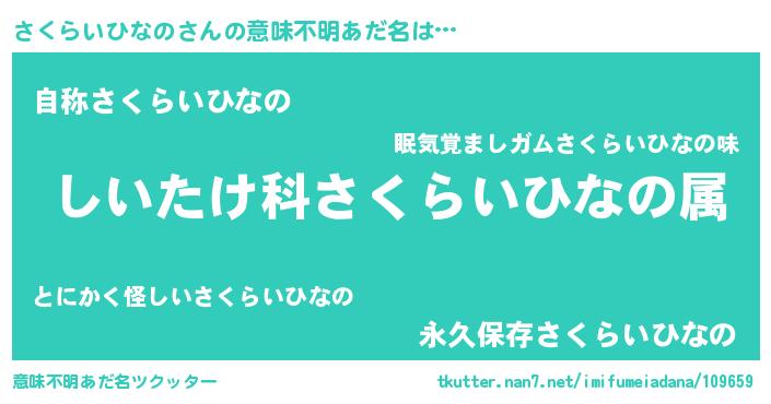 | 男性向けラノベタイトル風あだ名 | 『サクライヒナノスレイヤー』 |