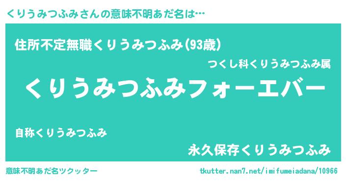 | 欧米人風あだ名 | 『くりうみつふみクリステル』 |