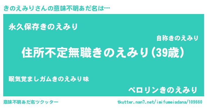 | 女子向けラノベタイトル風あだ名 | 『乙女ゲームの破滅フラグしかない悪役きのえみりに転生してしまった…』 |