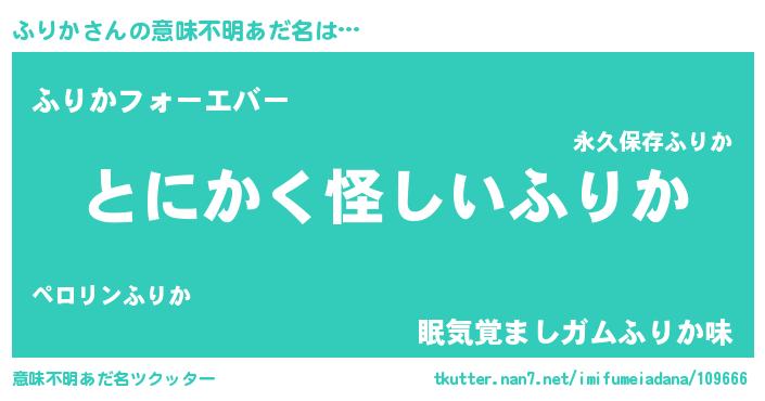 | ポケモン風あだ名 | 『ヒフリカ』『フリゴンZ』『ゼニフリ』 |