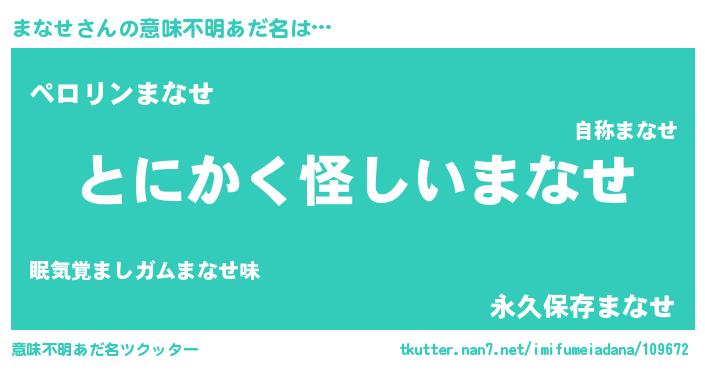 | 胡散臭い通販商品みたいなあだ名 | 『信頼と実績のペンダント…その名も「まなせ」』 |