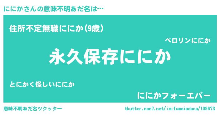 | 女子向けラノベタイトル風あだ名 | 『異世界で失敗しない100のににか』 |
