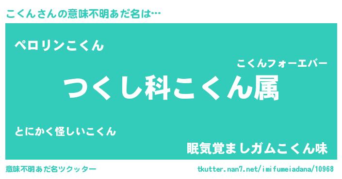 | ヘコむあだ名 | 『こくにゅー』『つくし』『こくっぺ』 |