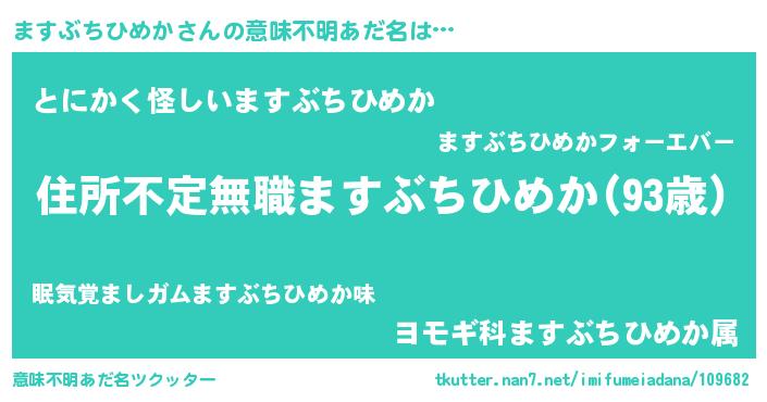 | ポケモン風あだ名 | 『マースイ』『ヒマスブチヒメカ』 |