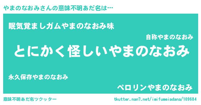 | 欧米人風あだ名 | 『ウサインやまのなおみ』 |