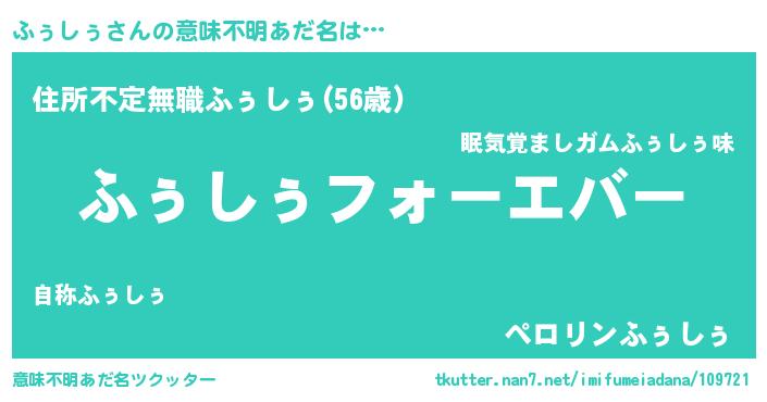 | ヒーロー風カッコイイあだ名 | 『ウルトラふぅしぅマン』『仮面フゥダー』 |