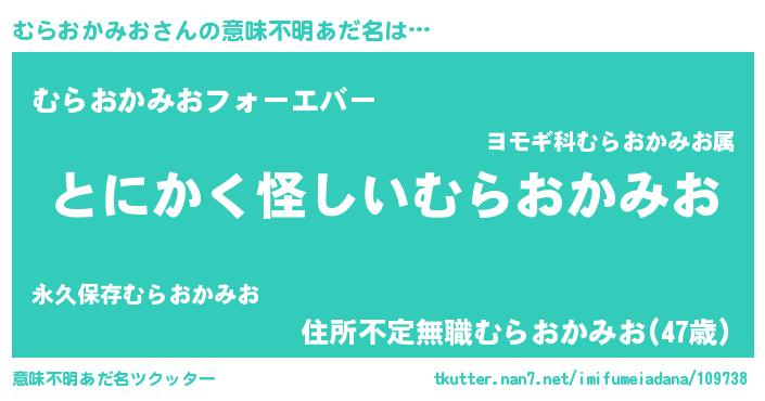 | ポケモン風あだ名 | 『ムラゴンZ』『ヒムラオカミオ』 |