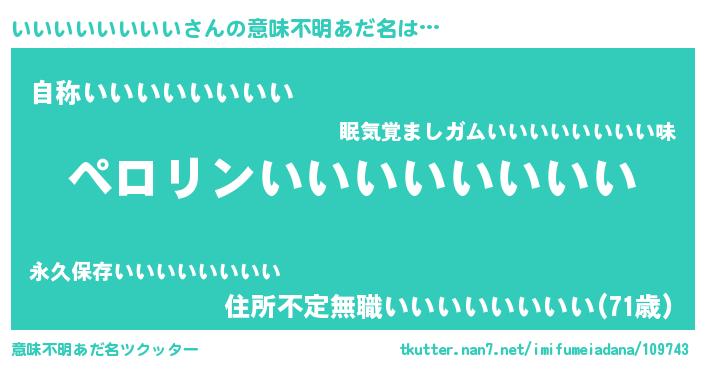 | 女子向けラノベタイトル風あだ名 | 『(仮)いいいいいいいいのやんごとなき事情』 |