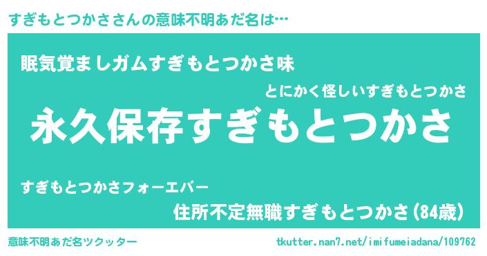| 伝説のあだ名 | 『古より伝わる勇者すぎもとつかさ』 |