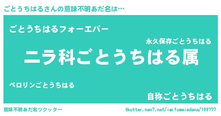 | 肩書あだ名 | 『ごとうちはる少将』『ごとうちはる総統』 |