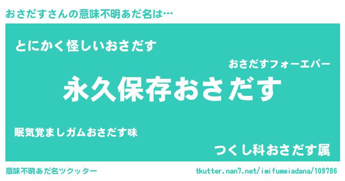 | 胡散臭い通販商品みたいなあだ名 | 『絶対に幸福をもたらす水素水…その名も「おさだす」』 |