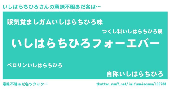 | ファンタジー風あだ名 | 『エターナルイシハラチヒロー』 |
